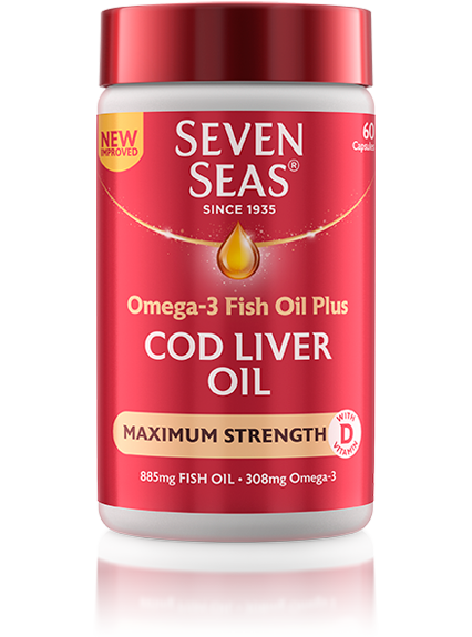 La capsule d'huile de foie de morue Seven Seas Force maximale contient deux fois plus d'huile de foie de morue. Elle contient également 308 mg d'oméga- 3 , ainsi que de la vitamine A, de la vitamine E et 10 µg de vitamine D, recommandée par le gouvernement britannique, qui contribue au bon fonctionnement du système immunitaire.
