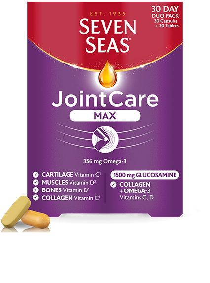 Seven Seas JointCare Max a été spécialement formulé pour favoriser un mode de vie actif. Il soutient le cartilage, les os, les muscles et le tissu conjonctif pour vous aider dans quatre domaines importants du bien-être articulaire. Il contient notre plus haut niveau de glucosamine : 1 500 mg.